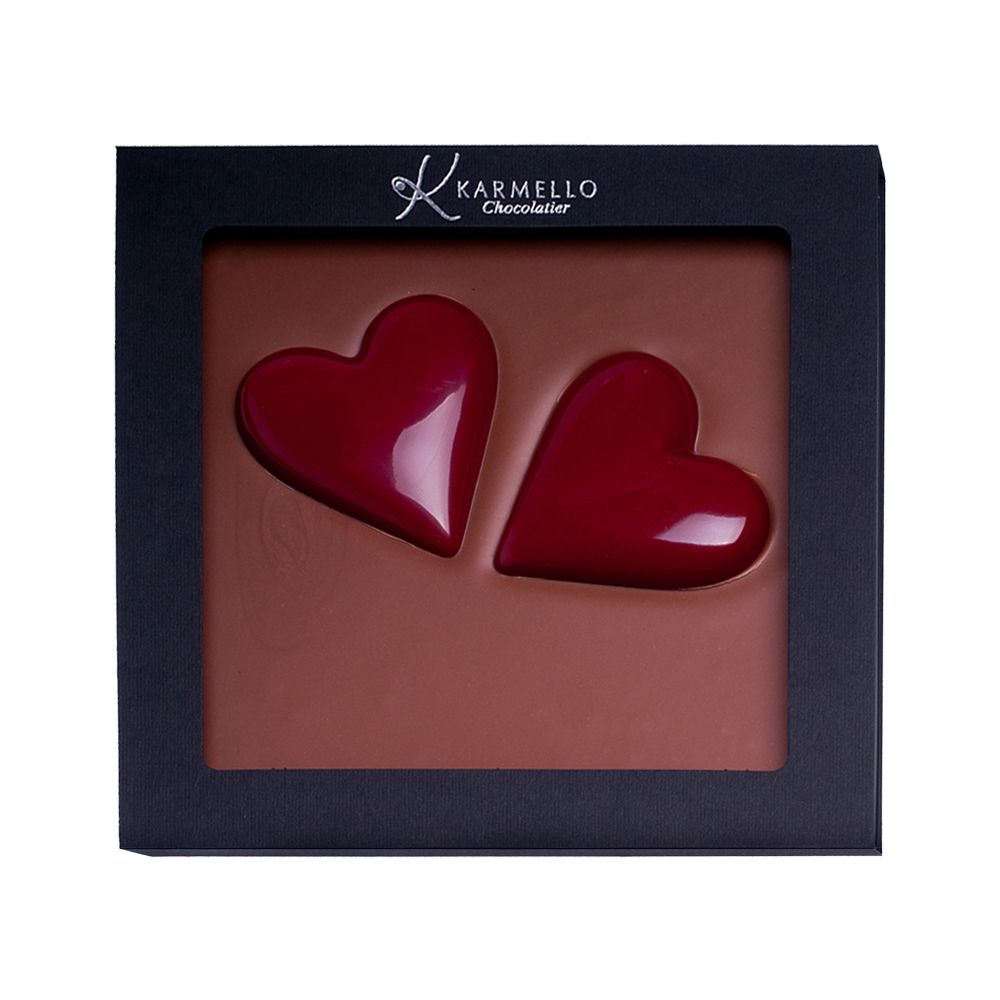 the heart, the most popular symbol of the Valentine’s Day, is now available as a delicacy by Karmello. Two hearts, made of the finest milk chocolate have been immersed in white chocolate and wrapped in an elegant gift box. Such a unique gift will for long remain in the memory of your loved one.