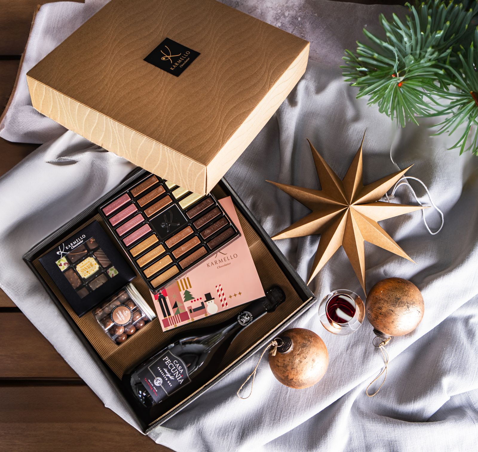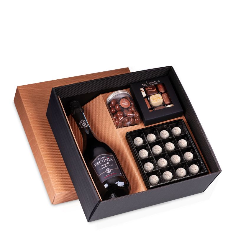 Das Champagner-Set „Giant“ ist ein exklusives Geschenkset für besondere Anlässe und winterliche Feste. Es vereint auf elegante Weise den vollen Geschmack von Schokolade mit der Leichtigkeit und Finesse von Wein. Ein perfektes Geschenk, das die Magie der Feiertage unterstreicht und jedem Anlass Glanz verleiht.