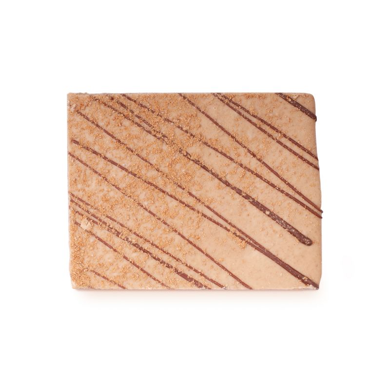 Eine Tafel aus weißer belgischer Schokolade kombiniert mit Lebkuchenpaste und Gewürzkeksen.