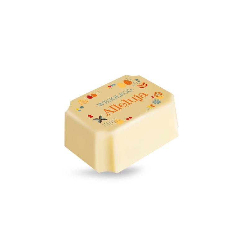 CHOCOLATE TREAT WITH A LOGO WHITE CHOCOLATE TREAT (50 %) WITH GINGERBREAD PASTE (33 %) AND WHITE CHOCOLATE (16.6 %) FILLING Ingredients: sugar; cocoa butter; whole MILK powder; vegetable oils and fats (palm, rapeseed); WHEAT flour; candied sugar; unrefined cane sugar; SOYA flour; inverted sugar syrup; emulsifiers: lecithin (SOYA, rapeseed); natural vanilla flavour; raising agent: E500; cinnamon; nutmeg; colouring agents: E102, E133, E124, E122. Colourings: E102, E124, E122 may have an adverse effect on activity and attention in children. The product may contain: NUTS, NAMELY: HAZELNUTS, WALNUTS, PISTACHIO NUTS, CASHEW NUTS, ALMONDS, PEANUTS, PECAN NUTS; EGGS AND PRODUCTS THEREOF. Energy value 2393kJ / 574kcal Fat, 37.0g of which saturated fatty acids 17.0g Carbohydrates, 55.0g of which sugars 48.0g Protein 5.3g Salt 0.3g