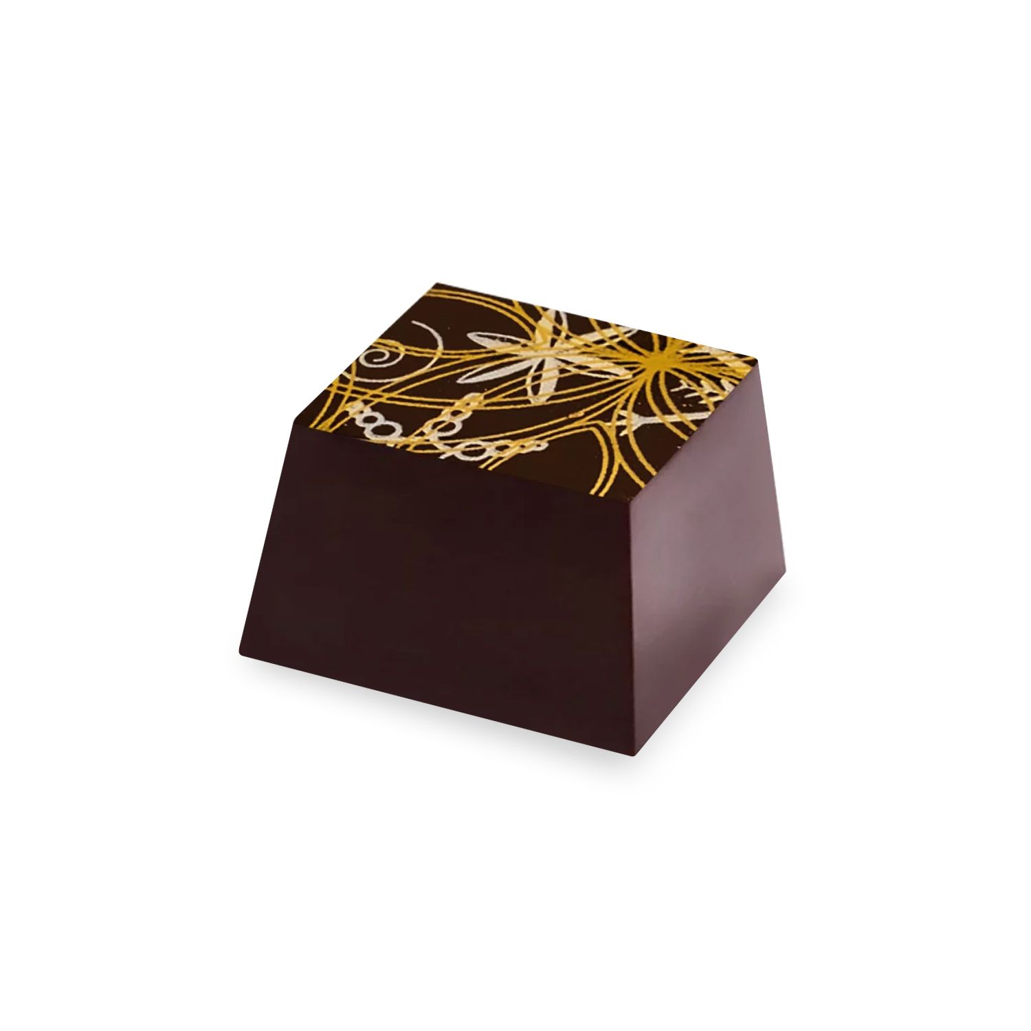 Eine wärmende Füllung auf der Basis von Milchschokolade mit einem Tropfen Rotwein und vollmundigen Gewürzen, versteckt in dunkler Schokolade.