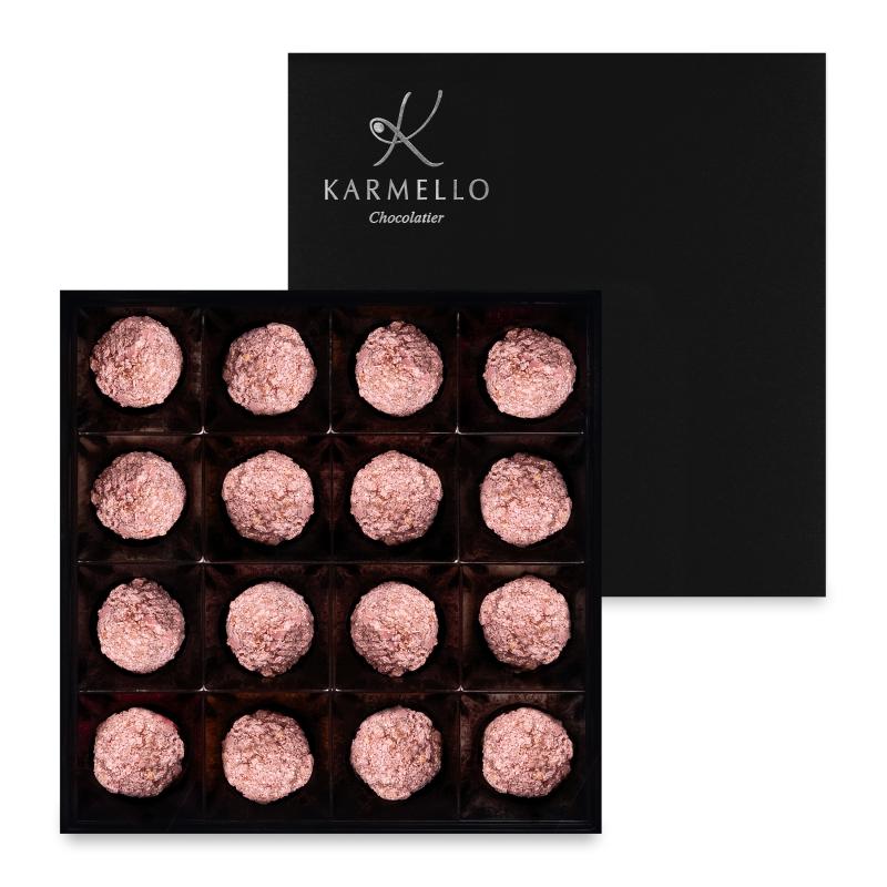Handgefertigtes Produkt. Das Bestreuen der Trüffel ist ihre natürliche Eigenschaft und beeinträchtigt nicht die Qualität und den Geschmack des Produkts.