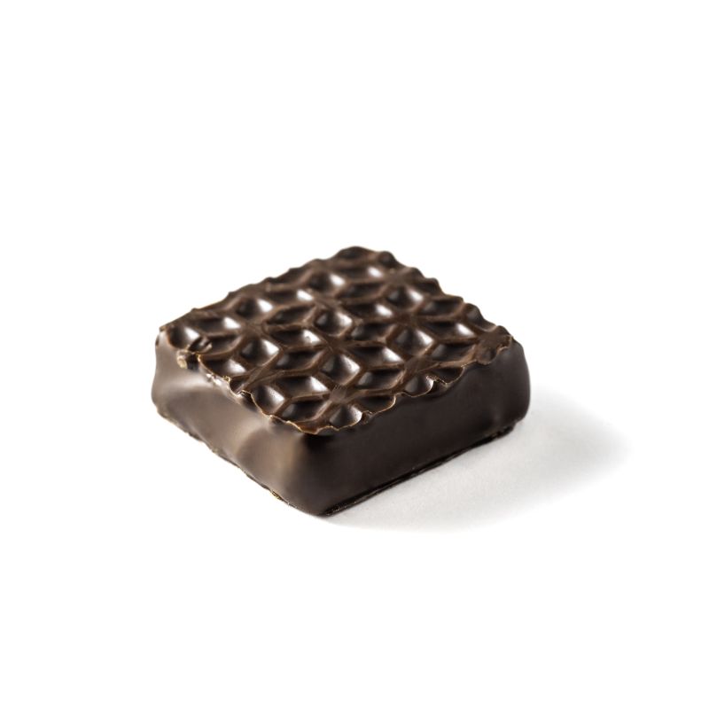 Ingredients: dark chocolate (71%) (cocoa paste; sugar; cocoa butter; emulsifier: SOYA lecithin; natural vanilla flavour); BUTTER; CREAM; glucose syrup; crystallized inverted sugar syrup; dried ground ginger (0.9%); emulsifier: glycerol. Dark chocolate: cocoa mass at least 54.1%.