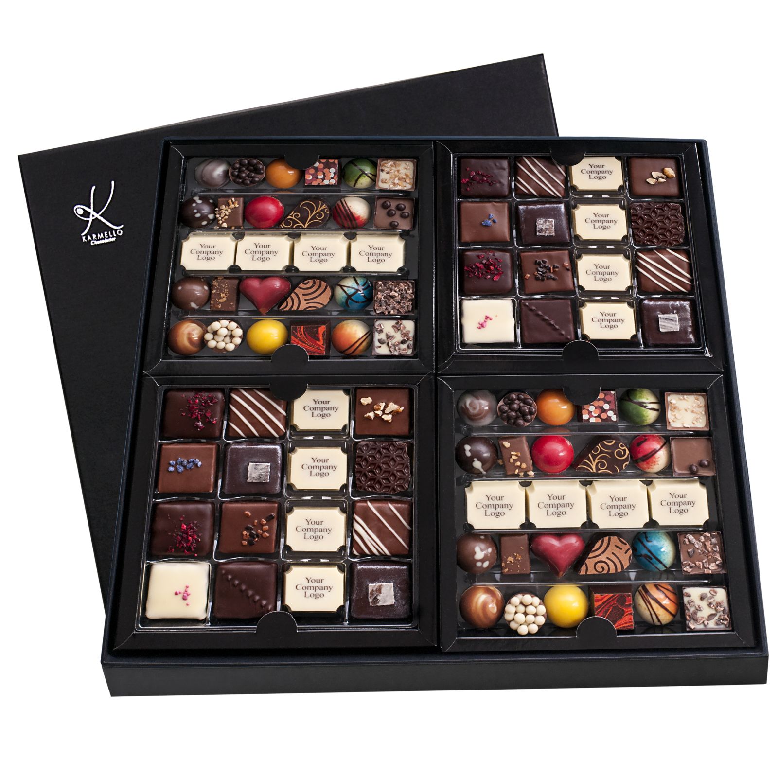 KAR055 VIERFACHES PRALINEN-SET MIT LOGO UND KARMELLO STANDARD MIT LOGO