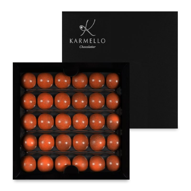 Der Geschmack von aromatischen karamellisierten Bananen und weißer Schokolade komponiert in einer Füllung, die mit Milchschokolade überzogen ist.