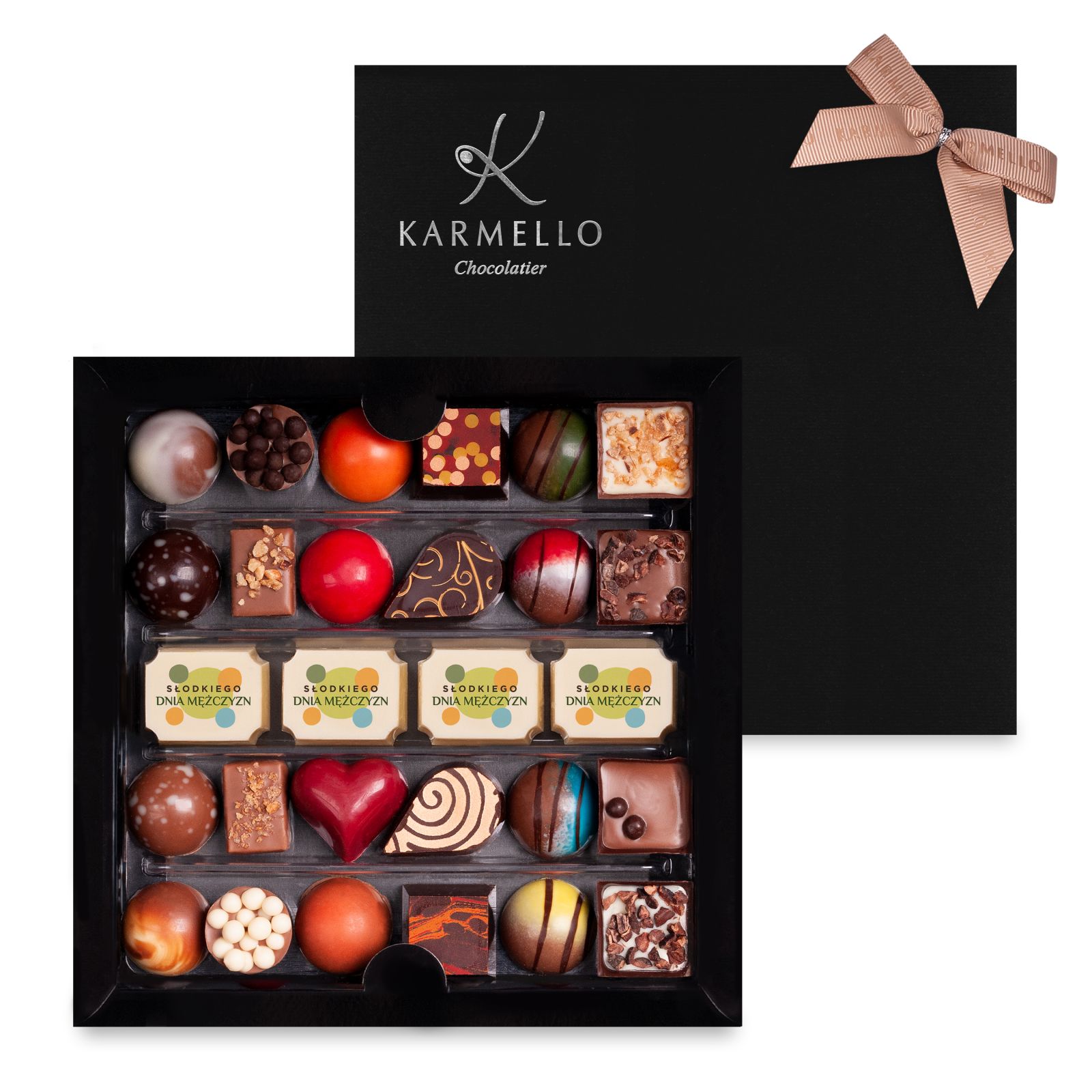 Tauche ein in eine süße Welt mit unserer besonderen Karmello Standard Kollektion, die speziell für den Männertag zusammengestellt wurde! Wir bieten einzigartige Geschmacksrichtungen und besondere Verpackungen, die diesen Tag noch magischer i voller süßer Genussmomente machen. Das Set enthält zusätzlich Pralinen mit Anlassdruck sowie eine Banderole mit der Aufschrift „Süßen Tag“.