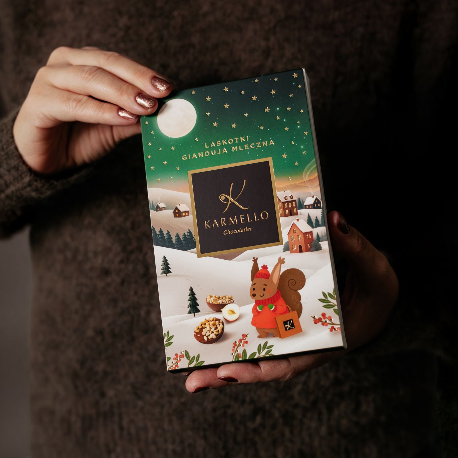 Wir freuen uns, Ihnen Laskotki präsentieren zu dürfen – Pralinen aus samtiger Milchschokolade und feiner Haselnusspaste, verziert mit knackigen, gerösteten Haselnussstückchen. Eine klassische Kombination aus Schokolade und Nüssen mit einer einzigartigen, festlichen Note.