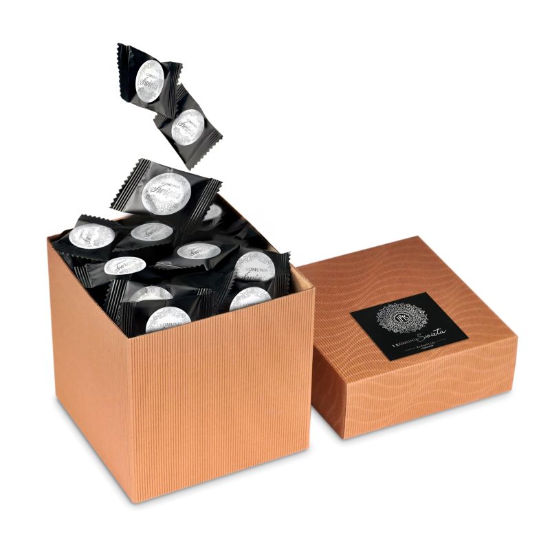 Unsere Bestseller-Würfelverpackung enthält 100 zartschmelzende Lebkuchenplätzchen. Jedes einzelne wurde sorgfältig mit einem Kommunion-Sticker verziert, was sie zu einem perfekten Geschenk für Kommunionsfeiern macht. Zusätzlich wurde die Verpackung mit einem eleganten Etikett versehen, das ihr einen besonderen Charakter verleiht.