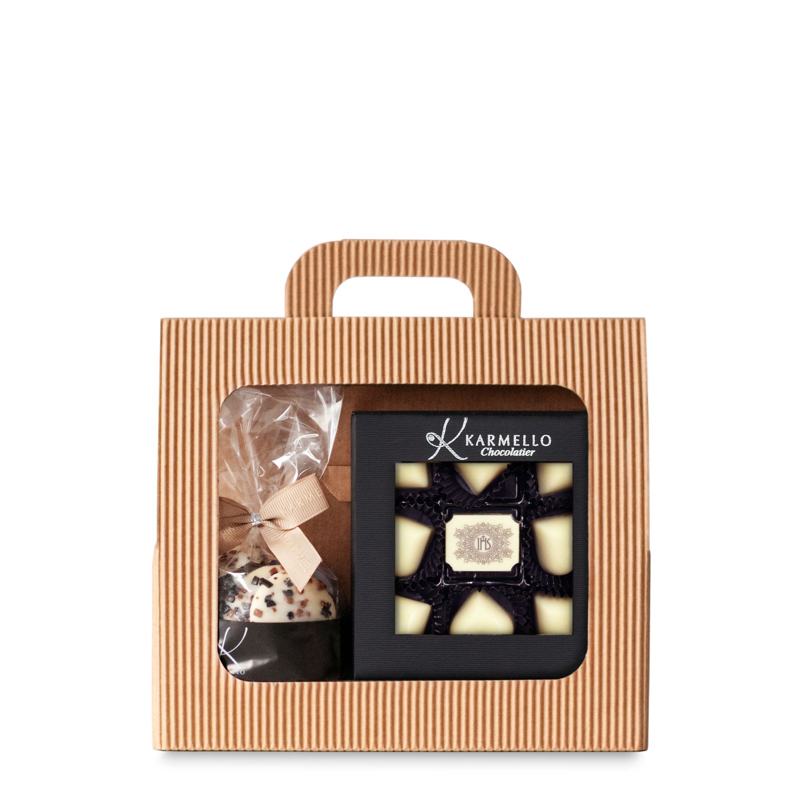 Die Mini-Geschenktasche, speziell für die Erstkommunion entworfen, ist die perfekte Wahl für diesen besonderen Tag. Die elegante Verpackung mit Tragegriff, die für ein bequemes Überreichen des Geschenks konzipiert wurde, verfügt über ein Sichtfenster, durch das die ganze Vielfalt an Schokoladenköstlichkeiten sichtbar ist. Das Ganze vereint Eleganz mit Funktionalität, und der Inhalt macht es zu einem wunderbaren Geschenk, das den Beschenkten mit Sicherheit begeistern wird.