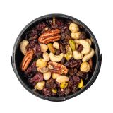 Ein Muss in jeder Küche – eine Mischung aus Nüssen und Trockenfrüchten. Im Inneren finden Sie unter anderem Pekannüsse, Haselnüsse, Pistazien und Preiselbeeren.
