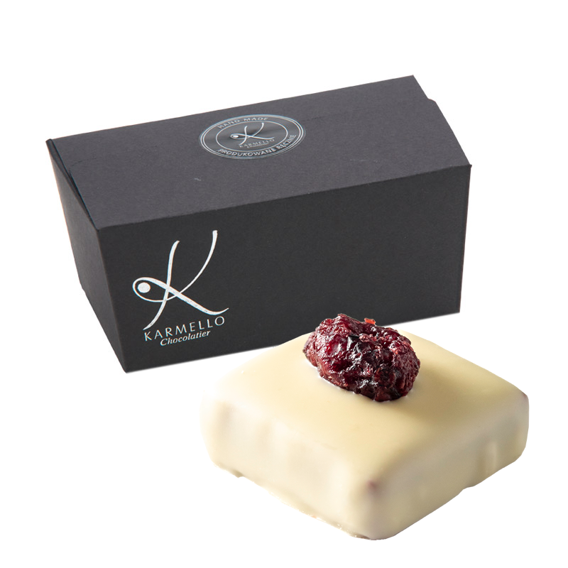 Eine perfekte Kombination aus reich schmeckenden Moosbeeren und cremiger weißer Schokolade.