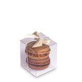 Haselnussmakronen und NOIR bilden ein süßes Duo, eingeschlossen in einer winzigen Verpackung, die mit einer Schleife verziert ist. Das Set eignet sich perfekt als süßes Geschenk in Form eines Dankes für Hochzeitsgäste.