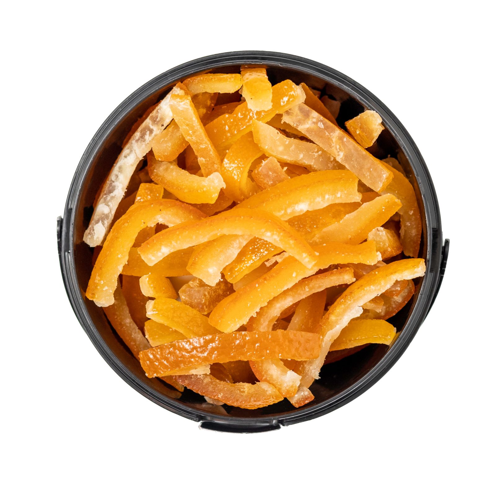 Streifen aus kandierter Orangenschale sind ein perfektes Duo mit Schokolade, sie eignen sich aber auch hervorragend als Dekoration für Ihr selbstgemachtes Gebäck und mehr.