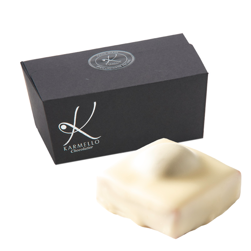 WHITE CHOCOLATE PRALINE WITH MILK CHOCOLATE WITH HONEY AND CHERRY FLAVOURED FILLING (68 %)