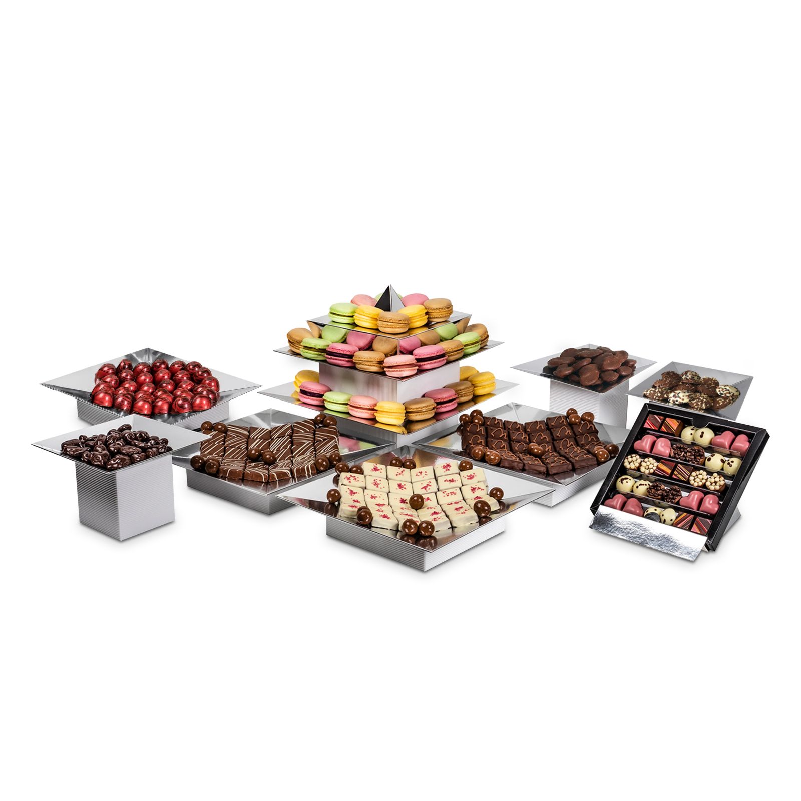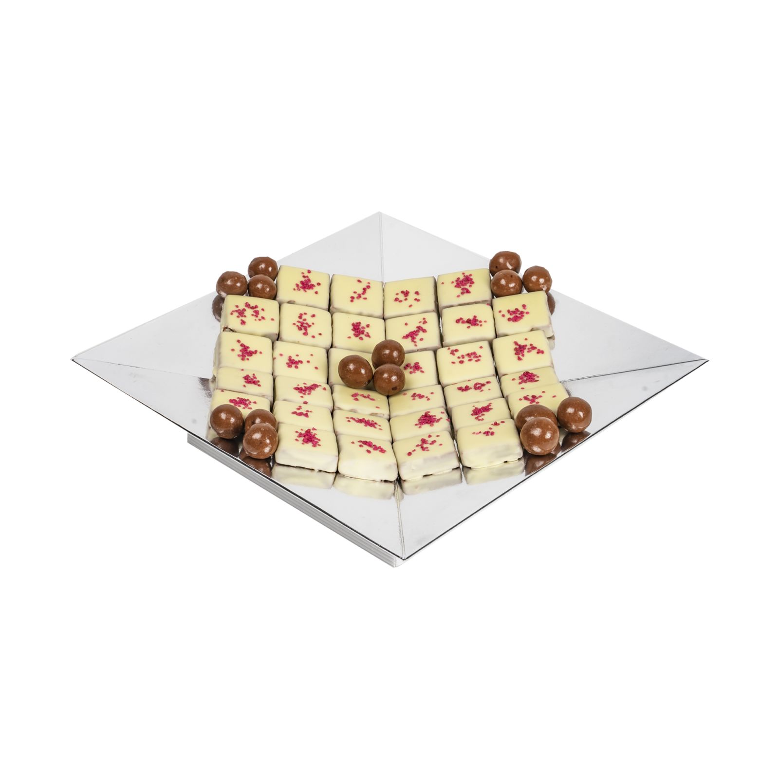 SCHOKOSTÜCKEN-MIX FÜR SIE ist eine Kombination aus Erdbeergeschmack, begleitet von Ruby-Schokolade, Lebkuchen, Gianduia und Malibu-Rum Alkohol. KEKSE ist ein Lebkuchen, der in der Süße von weißer Schokolade verschlossen ist. Komplettiert wird das Set mit den PRALINEN ROSA, KOKONUSS und KLASSISCH. Ebenfalls enthalten sind die HASELNÜSSE, ROSINEN und ORGANGENSCHEIBEN, die sich perfekt als kleiner Snack eignen. Das XL-Set enthält unseren Bestseller – Makronen, die die Herzen unserer Stammkunden gewonnen haben. Äußerst zarte, knusprige Kekse, die bis zum Rand mit einer zartschmelzenden Füllung auf der Basis von Schokolade mit verschiedenen Aromen oder im Geschmack dezentem Mascarpone gefüllt sind. Sie sind perfekt als Weinbegleitung! Außerdem finden Sie im Set eine BTERUNKENE KIRSCHE – eine gaumenfreudige Komposition aus Kirschen und im Geschmak entschiedener Zartbitterschokolade, deren Aroma durch einen Tropfen Alkohol zusätzlich bereichert wird.