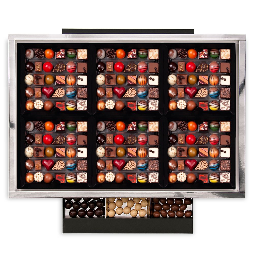 Sind Sie auf der Suche nach einem exklusiven und eleganten Geschenk für Ihre Liebsten? Im Hinblick auf Sie haben wir eine einzigartige Komposition namens myKarmellowe geschaffen. Eine einzigartige, bis ins kleinste Detail ausgearbeitete Verpackung, die verschiedene Materialstrukturen kombiniert, um 6 Kompositionen von Schokostücken zu enthalten. Zusätzlich enthält die myKarmellowe Komposition eine Schublade für 6 Sets Nüsse in feinster Schokolade.