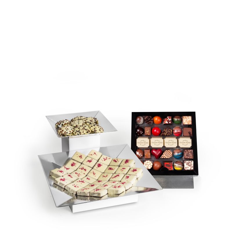 Eine Reihe von KARMELLO STANDARD-Pralinen, die so zusammengestellt sind, dass Sie die herausragendsten Aromen unserer Produkte kennenlernen können, beginnend mit subtilen, nussigen Noten, endend mit starken Alkoholaromen. COOKIES sind der Geschmack würziger Noten, eingeschlossen in der Süße weißer Schokolade. Ergänzt wird das Set durch ROSENPRALINEN - seidige, cremige Füllung kombiniert mit einem dezenten Rosenaroma in Begleitung von weißer Schokolade.