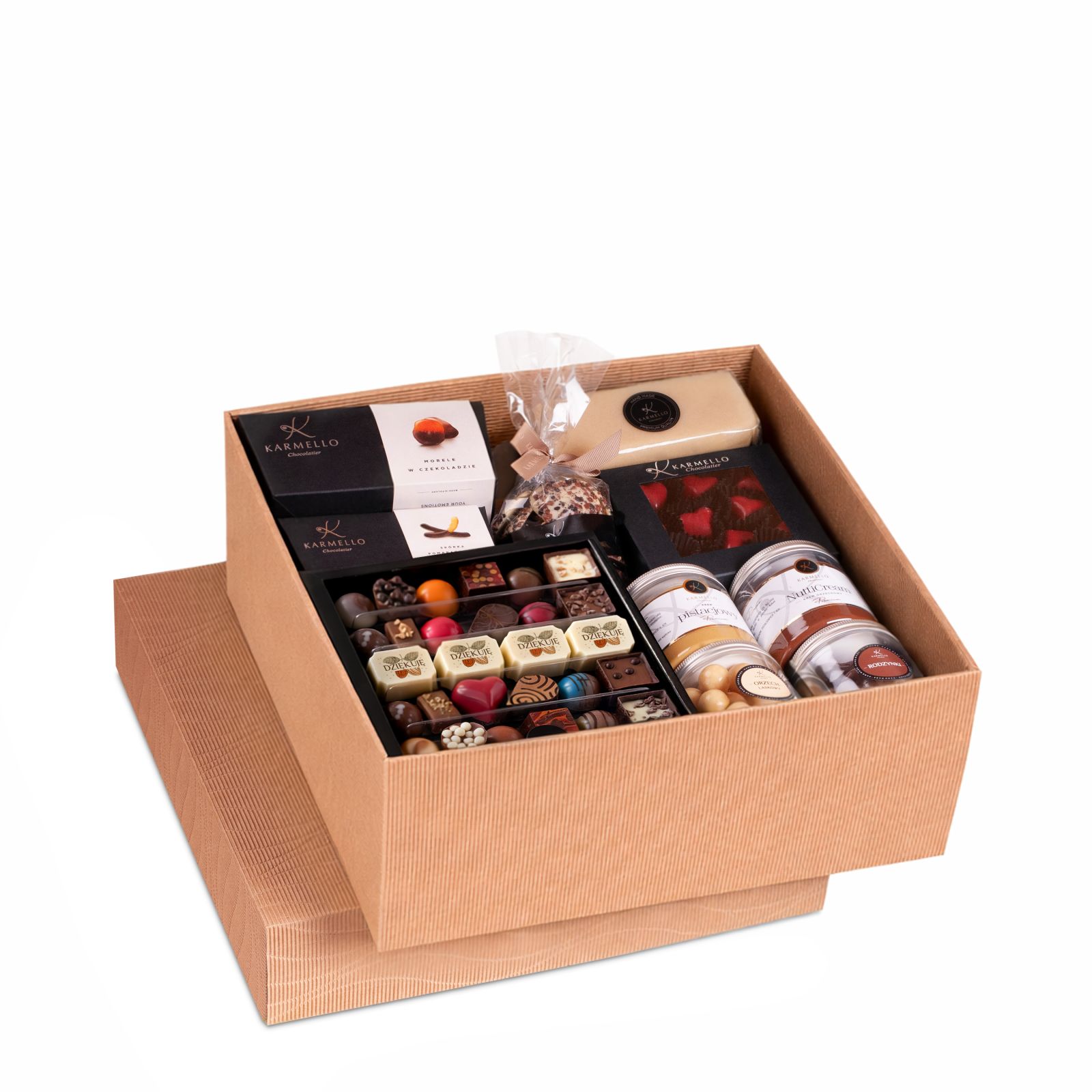 Gigant, um eine große Anzahl von Menschen zu befreien, die sich um die Gesundheit kümmern. Wir haben eine Reihe neuer Produkte erstellt, die Ihnen die Möglichkeit bieten, Ihr Produkt zu verbessern und zu verbessern. W opakowaniu znajdziesz wiele smakołyków, w tym zestaw czekoladek, bakalie w czekoladzie, krem Karmello i wiele innych pyszności.
