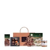 Verschenken Sie süßen Zauber! Unsere elegante Tasche enthält eine einzigartige Kollektion sorgfältig ausgewählter Köstlichkeiten: aromatische Pralinen, eine Praline in Form eines Weihnachtsbaums, eine zarte Creme mit samtiger Textur und natürlich süße Datteln. Jede einzelne Zutat wurde mit viel Liebe zum Detail zusammengestellt, um ein harmonisches Gesamtbild zu schaffen – ein perfektes Geschenk, das mit Geschmack und Eleganz begeistert.