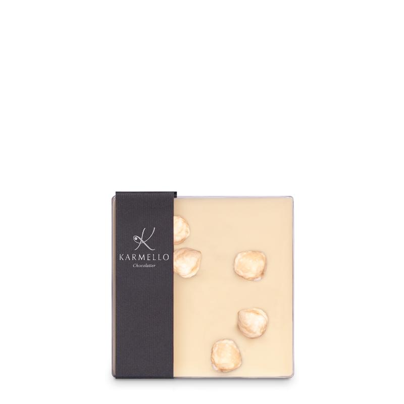 WHITE CHOCOLATE DECORATED WITH HAZELNUTS (min. 5 %*)