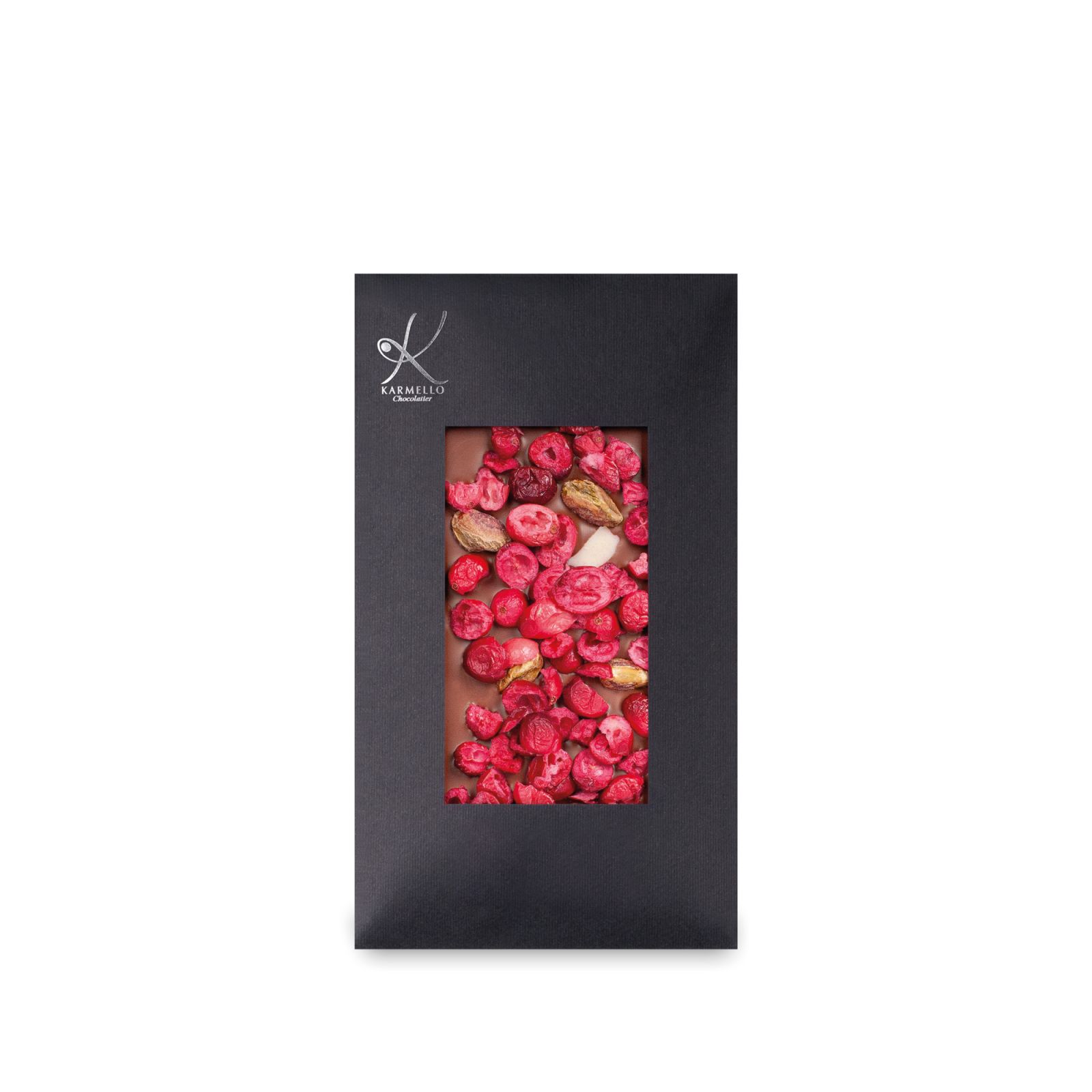 Z063 VOLLMILCHSCHOKOLADE EXKLUSIV MIT MOOSBEEREN UND PISTAZIEN